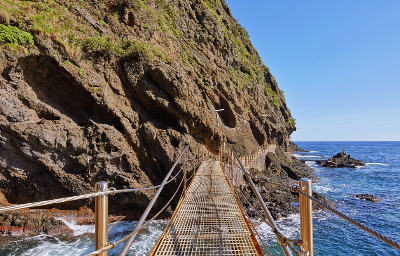 이 산책로의 하이라이트 중 하나가 바로 ‘소라계단’입니다. 직벽을 따라 높이 54m까지 올라가는 나선형 계단인데, 올라갈 때마다 바다와 절벽이 한눈에 들어와 스릴과 감동을 동시에 줍니다.