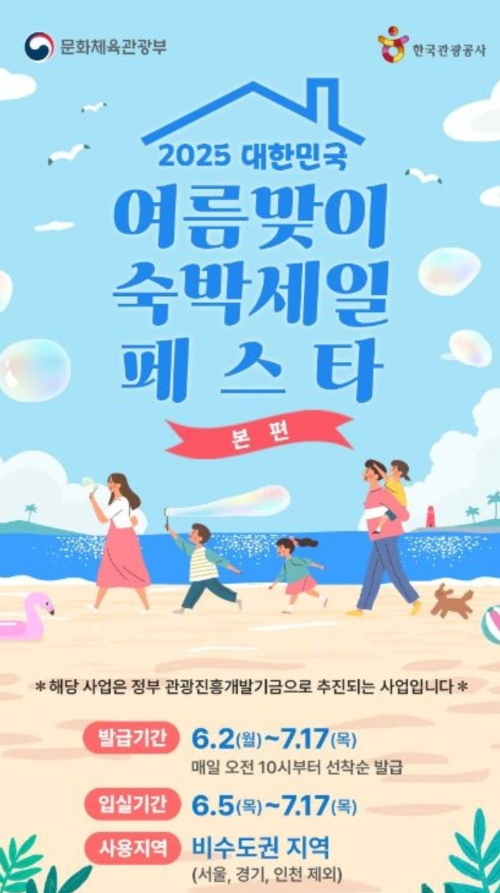 여름 휴가철이 다가오고 있습니다! 숙박비 때문에 여행을 망설이셨다면 반가운 소식이 있어요. 바로 문화체육관광부와 한국관광공사가 준비한 '2025 대한민국 여름맞이 숙박세일 페스타'인데요. 알찬 혜택과 함께 여행을 떠날 수 있는 기회를 놓치지 마세요!