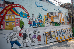 만화 속 캐릭터들이 골목마다 숨어 있어요.