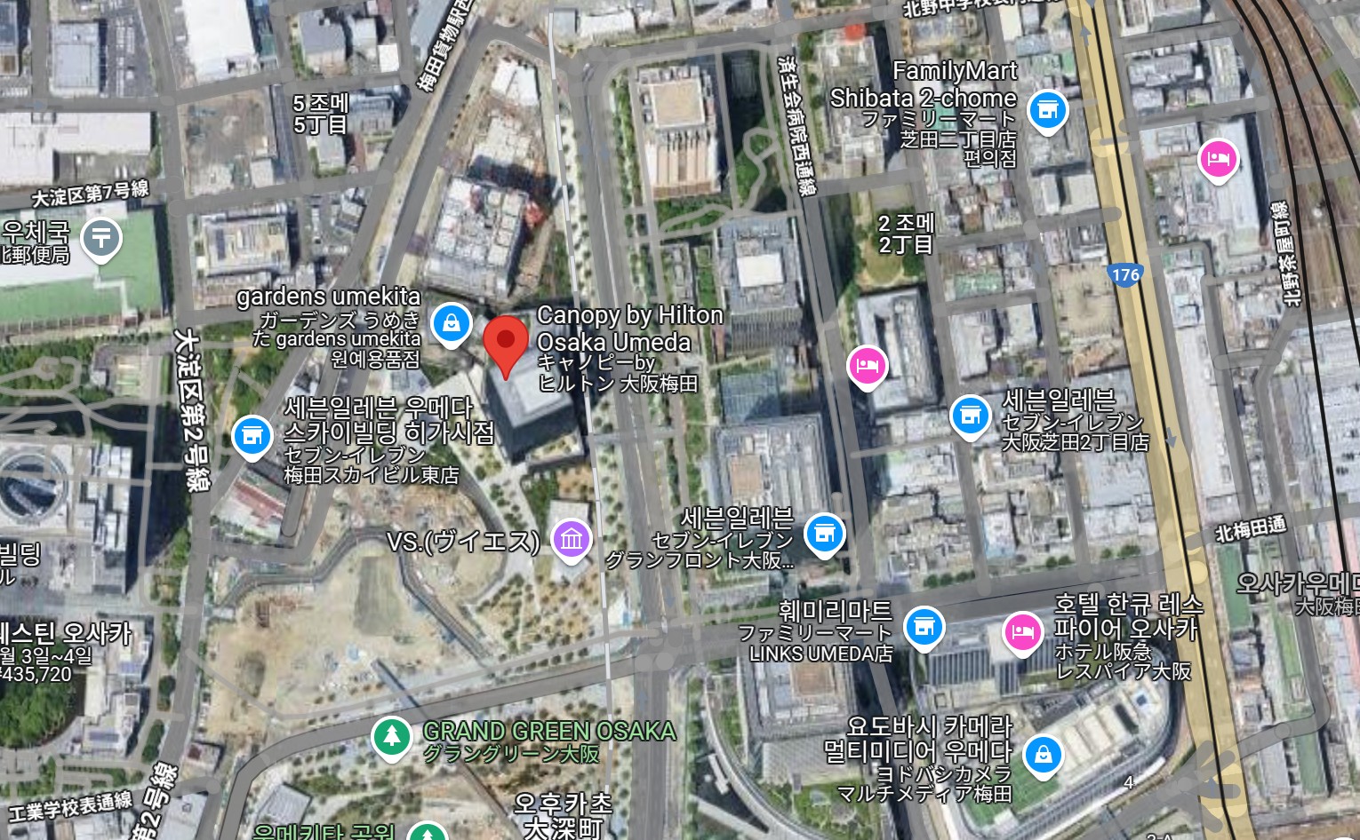 JR 오사카역과 우메다역에서 도보로 5~7분 거리