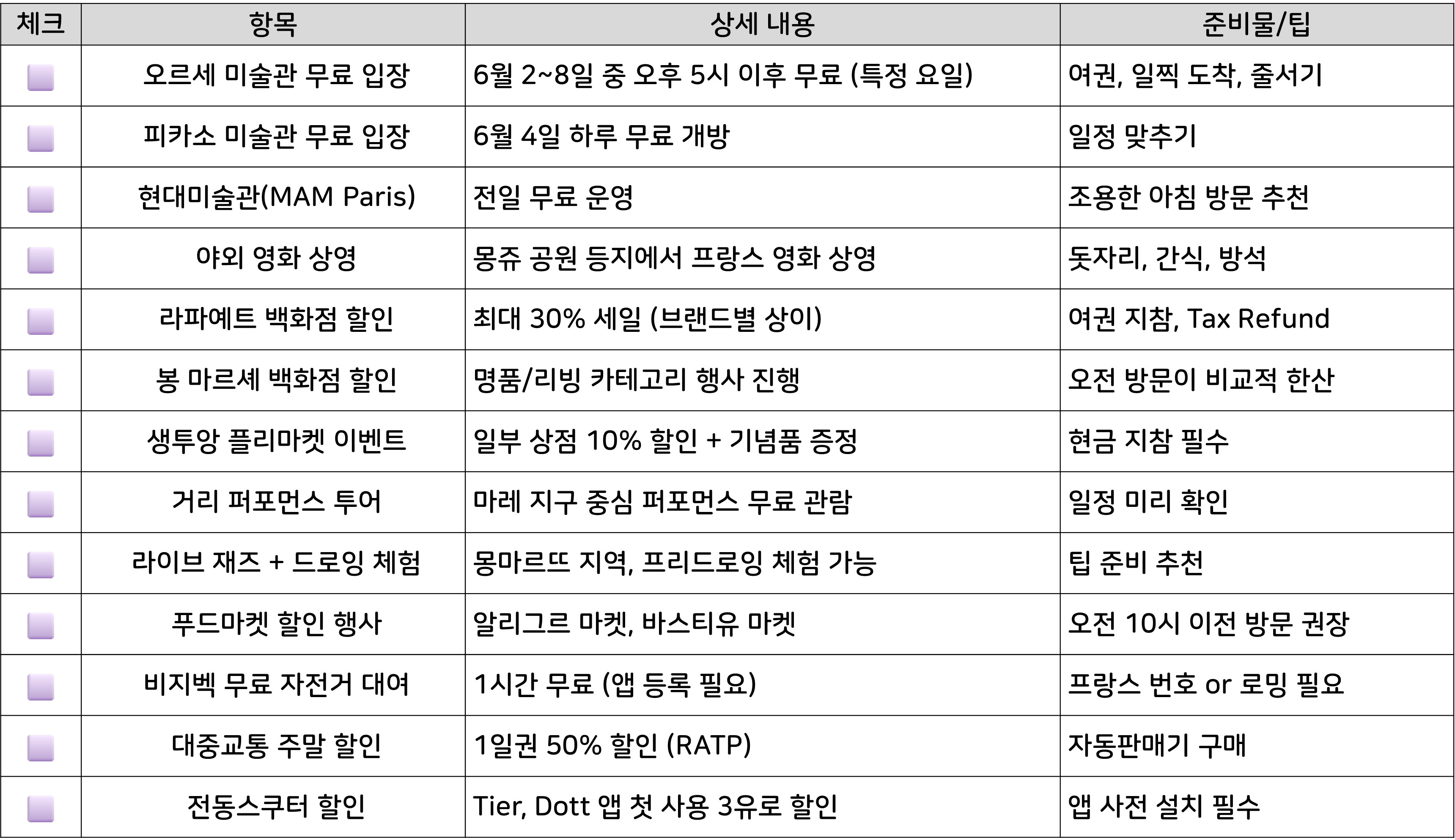 ** 파리 6월 여행자를 위한 ‘무료 혜택’ 체크리스트